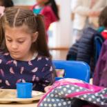 The children eat lunch together in the school hall. Children who have a school lunch have a meat or vegetarian option with a range of delicious vegetables, side dishes and salad. There is also a choice of dessert. The children are served their lunch by the friendly kitchen staff and are encouraged to try new foods. There are often themed days to highlight foods from different parts of the world, for example 'Greek day', 'African day' and 'picnic days' in the summer term where everyone eats outside.